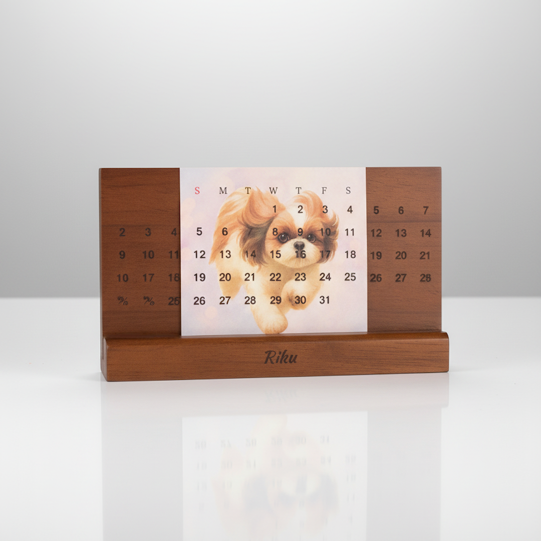 お客様がお持ちのお写真をもとに、やさしい水彩タッチのイラストを描き起こし、世界にひとつだけの万年カレンダーをお作りします。